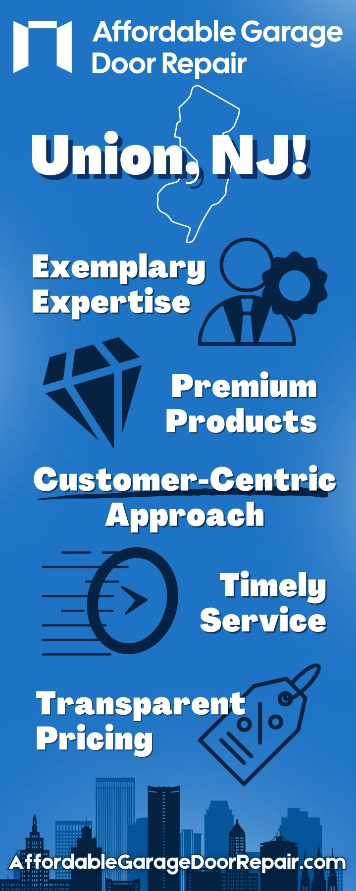 Affordable Garage Door Repair offers premium garage door repair, installation, and service to Union, New Jersey. Our expert technicians are here to help whether you need emergency repairs, routine maintenance, or a complete garage door installation. Our same-day service and 24/7 emergency support ensure that your garage door operates correctly to be a secure, functional, and efficient part of your home year-round.