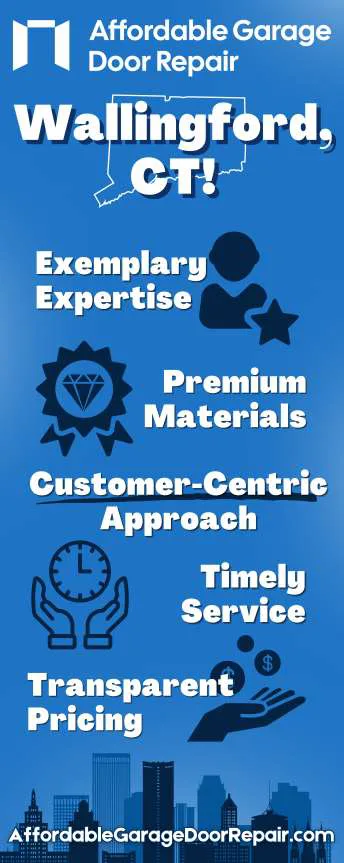services, servicing people of every type and a beautiful variety of styled designs to the people and proud businesses in Wallingford, Connecticut for residential or commercial repair. No matter if you need emergency services, basic services, or a new installation, our experienced crew will be there to help. We provide same-day service and emergency support 24 hours a day to keep your garage door locked, operating perfectly, and functioning smoothly year-round.