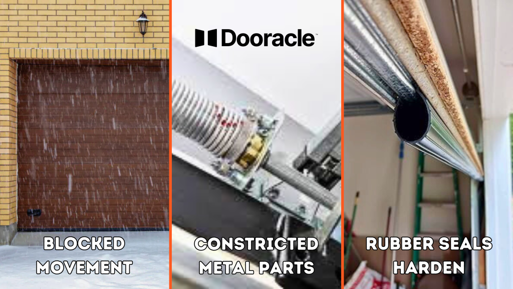 - Constricted metal parts: Cold temperature will cause metal parts, such as springs and tracks, to constrict—causing misalignment or failure of the tension.