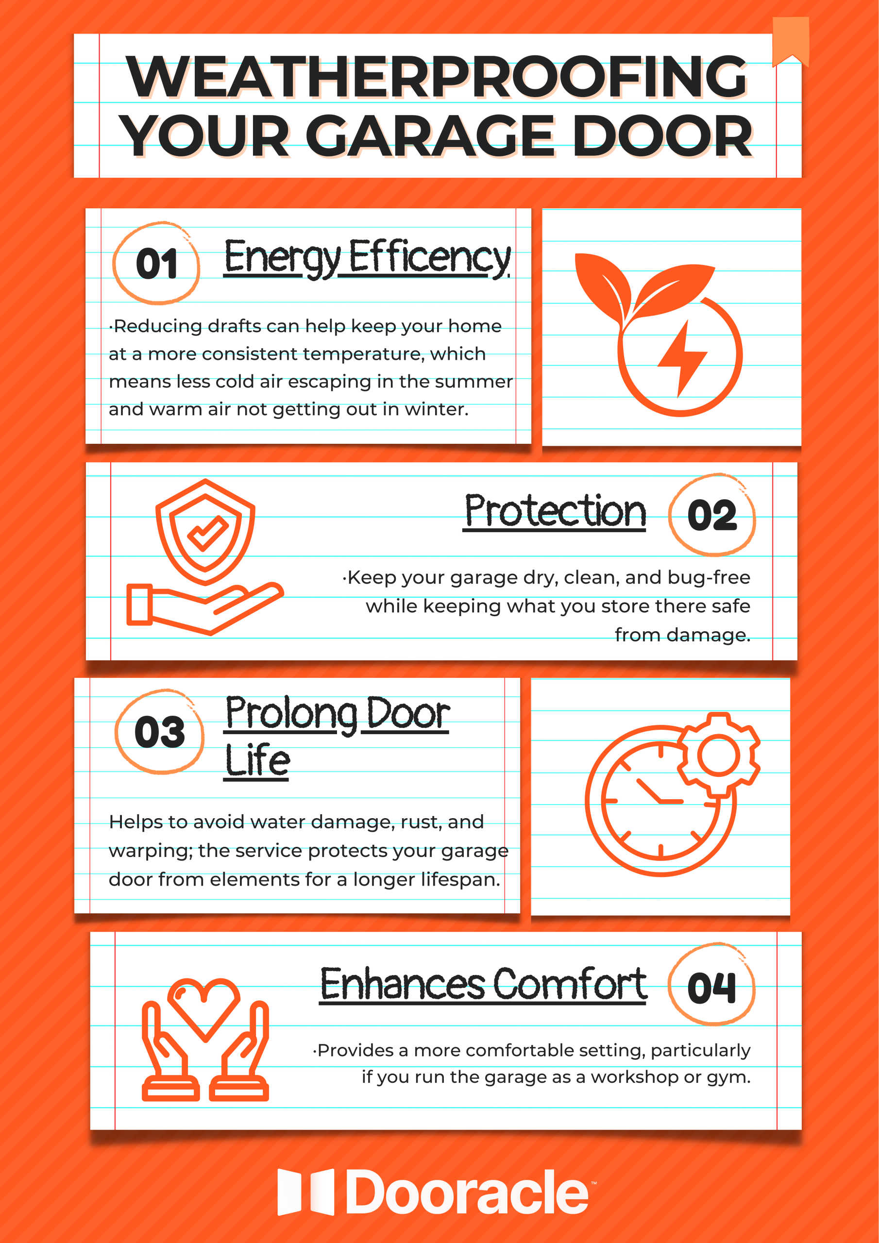 If you want a few quick ways to weatherproof your garage door, make it more durable, and improve its overall efficiency then here are some of the best options: