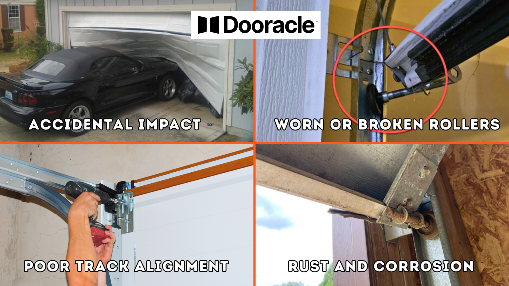 Tracking issues — Catch misaligned tracks early on to avoid further damage. Some symptoms that can point out a bent track problem in your garage door.