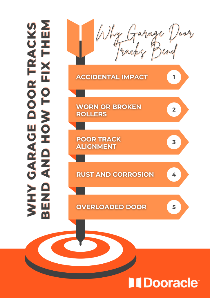 There are many reasons why garage door tracks become bent. Discovering the root cause is critical to ensure the issue does not occur again post-repairs.