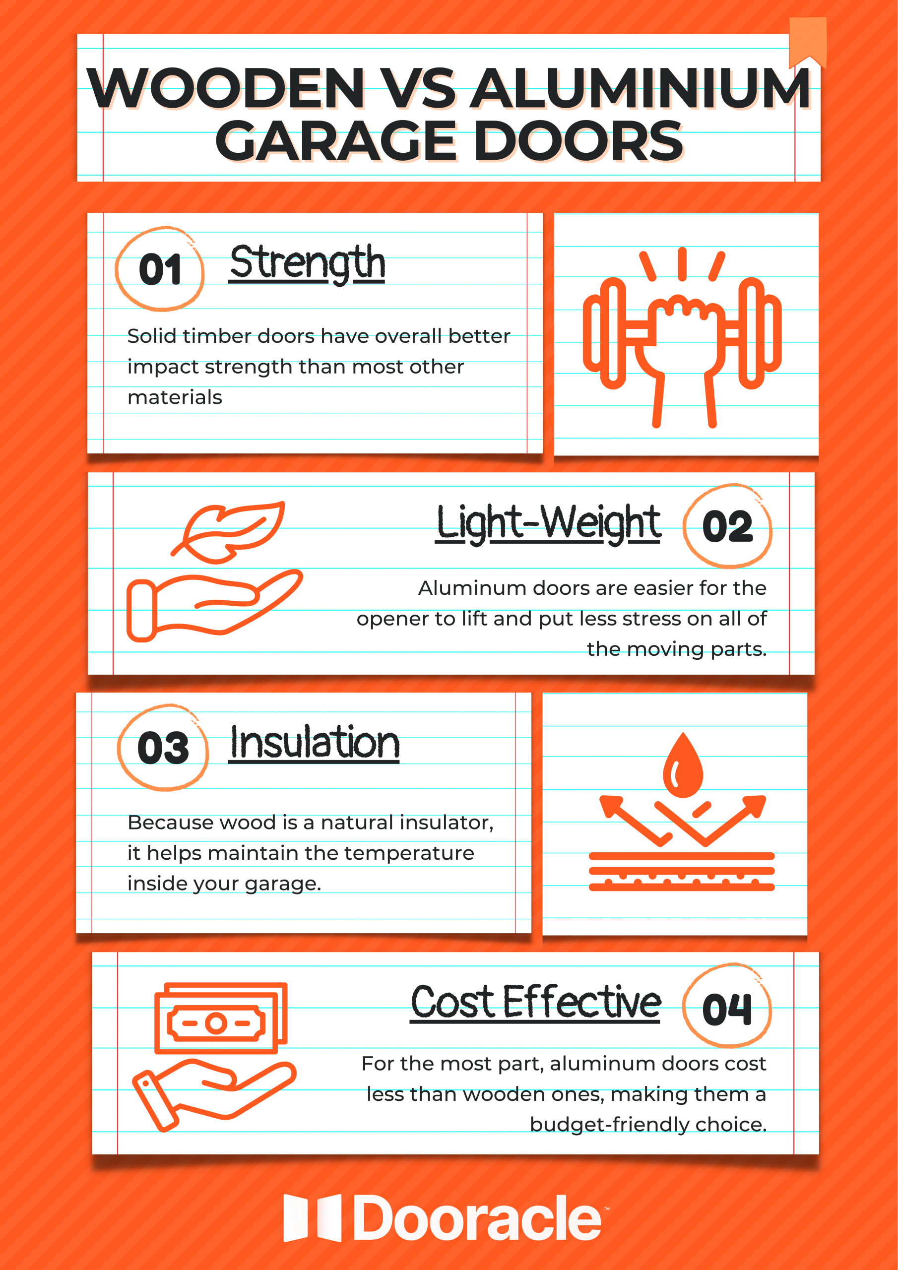 Wooden doors are heavier than most materials, adding strain to the garage door opener and fittings.