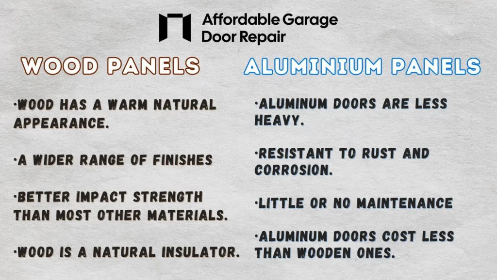 Picking the right garage door for your home is more than just selecting a design that you love. What Your Garage Door is Made from Your garage door material is perhaps THE most crucial aspect of its life, maintenance, and performance capabilities. Wooden and aluminum garage doors are two of the most common choices for homeowners. Both have their advantages, but there are also some downsides.